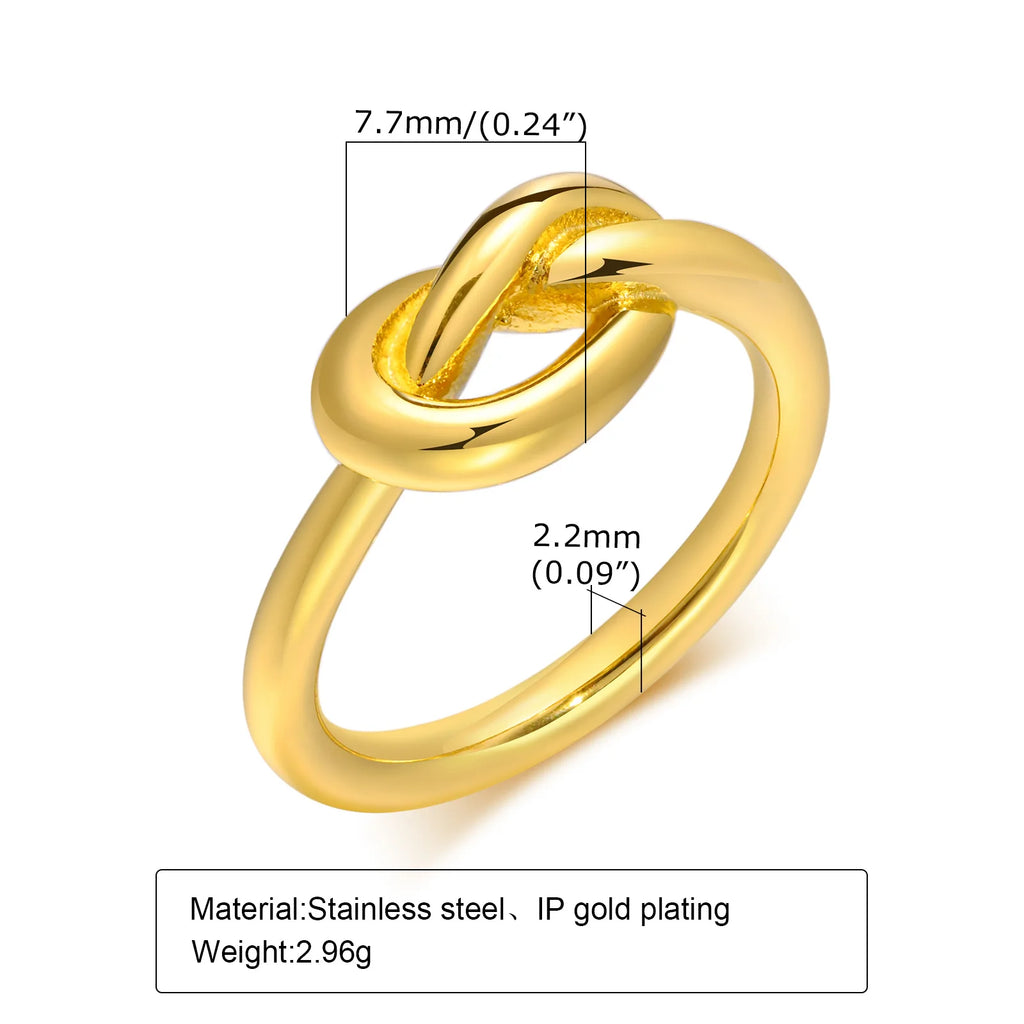 Este anel Nó do Amor em aço inoxidável banhado a ouro é uma peça delicada e simbólica, perfeita para expressar ligação, união e carinho. Com design minimalista e leve, pode ser usado sozinho para um visual elegante ou em conjunto com outros anéis em estilo stacking.